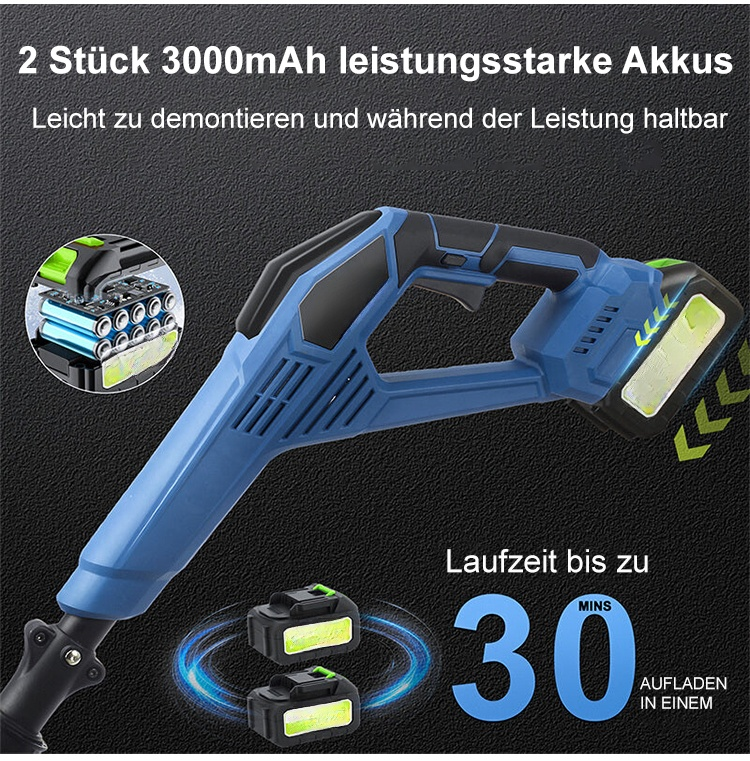 ✅ Zwei Akkus für lange Laufzeit – genug, um Ihren gesamten Garten in einem Durchgang zu räumen